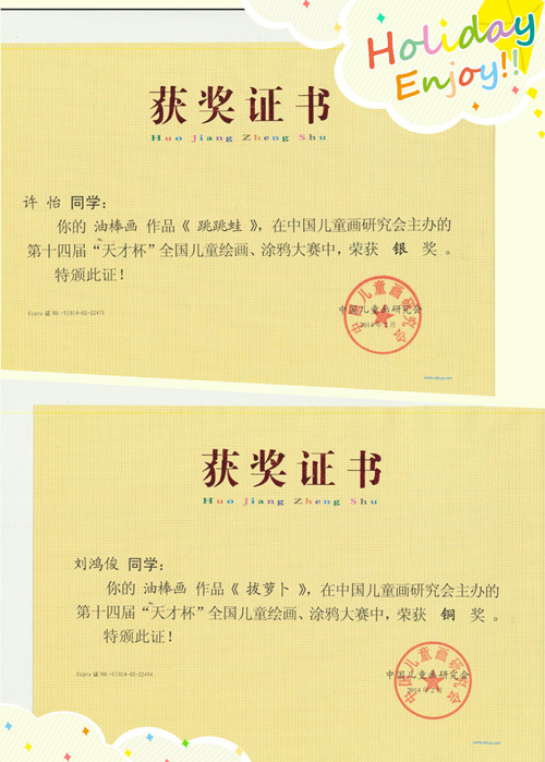 2月24日,我们接到了中国儿童画研究会的喜讯,中一班15个孩子参赛并全部获奖,其中包括2金2银11铜,我们为所有参赛的孩子感到骄傲和自豪。在孩子们的画中,我们看到了稚嫩的笔触下,五彩斑斓的内心;看到了天马行空的奇思妙想;也看到了孩子们对美好世界的憧憬。让我们共同努力,让孩子们的童年盛开更多美丽的艺术之花!