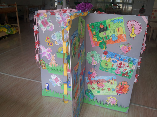 六一将近,孩子们纷纷表示想共同来装扮我们的教师,于是他们各个拿出看家本领,完成了一件作品,老师将这些孩子的作品利用kt板形象而立体的展现了出来。这次展出的美术作品共有蜡笔画、创意折纸、创意手工作品、拼贴画等等,通过这次展览,展示小朋友们的美术技能,从小培养他们的美术兴趣、创意意识、审美能力,为以后能力的全面发展打下基础。利用废纸等作美术材料既节省费用,又让孩子从小有环保意识。