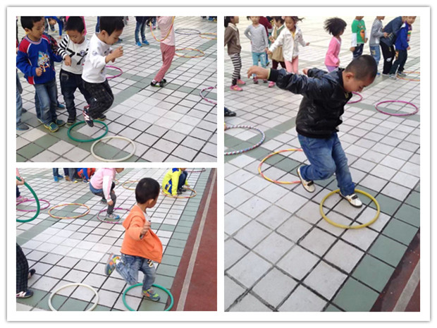 今天下午,我们小朋友一起来做了一个游戏“好玩的圈圈”,圈圈对于大班小孩子来说已经非常熟悉了,也有很多种不同的玩法,为了激发小朋友们的活动积极性,我们老师做完示范后把小朋友分成了六组来比赛,你看,一个个玩的多高兴,大家你追我赶,既提高了小朋友们的团队荣誉感,又体验到了圈圈所带来的快乐。