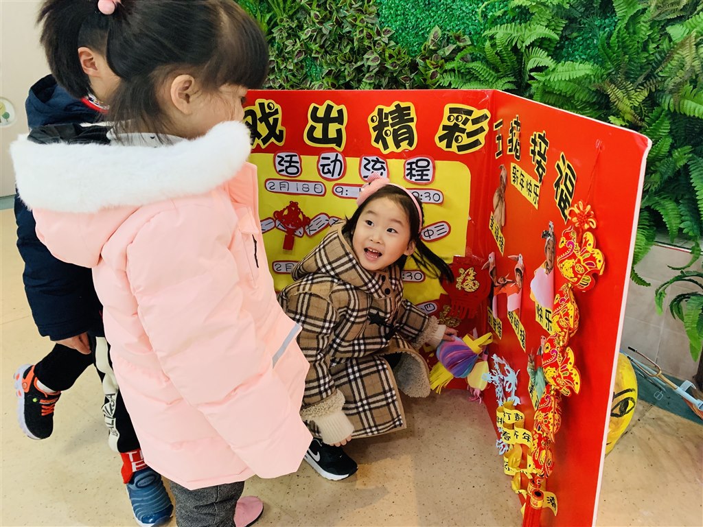 一盏盏形态各异的灯笼已经悬挂在入门的大厅,小朋友们高兴地指着,讨论着哪一个花灯是他们的最爱。不仅如此,我们的“追寻年味”展板也受到了小朋友的喜爱,原来对于他们来说,传统节日也能这么有趣精彩。
