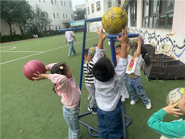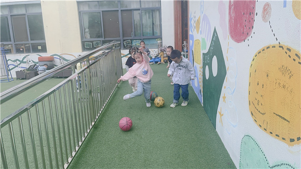 爱玩是孩子们的天性,丰富多彩的户外体育活动是孩子们健康成长的源泉。9月26日,广化幼儿园小2班的幼儿进行了花样玩球的游戏活动。幼儿们有的利用地形的高低进行滚球的活动,有的进行投篮,有的进行射门,还有的用球叠叠高,