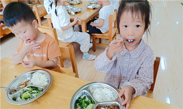2022年9月25日广化幼儿园小班开展“我是用餐小明星”的评选活动。激励小班幼儿养成自主用餐,文明进餐的好习惯。一个良好习惯的形成是一个长期的过程,这中间需要家长和老师共同正确弓|导和培养。进餐习惯包括饭前洗手、吃饭时细嚼慢咽、不挑食、不偏食、不剩饭菜等。现在的孩子基本上都是家里的小皇帝、小公主,过得是衣来伸手饭来张口的生活。所以根本谈不上有一个良好的进餐习惯,这就对我们在对培养孩子正确进餐习惯工作上提出了更高的要求。当孩子进入幼儿园以后,老师会根据餐前餐后管理规定指导孩子正确用餐。刚开始我们发现,由于孩子在家里没有一-个良好的用餐习惯,很多孩子不知道饭菜进口后要咀嚼或者不会咀嚼,出现整吞或者没有嚼碎就吞下去的现象,还有的孩子不知道一口饭一口菜,挑食偏食现象也很普遍。饭菜端_上来以后有用手抓的,有看着饭菜发呆的,这都是没有养成好的进餐习惯的表现。这时候就需要我们的老师来引导孩子正确用餐的方法,引导并让孩子养成良好的进餐习惯。进餐结束以后,老师要引导孩子将自己餐桌上、碗里的食物残渣清理干净,倒在指定地方,并把碗轻轻的放在固定地方,养成饭后漱口、用毛巾擦嘴的习惯。