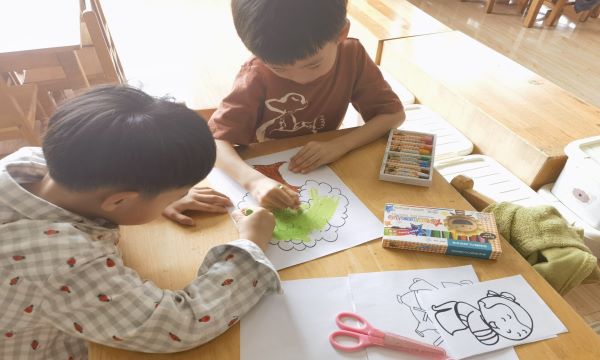 活动开始后,老师先向幼儿讲述了皮影艺术的起源,然后发放了白纸、颜料、吸管、胶带等材料。活动开始,有的人想制作大树,有的人想做一个孙悟空,有的人想做一个老爷爷......接着老师开始指导幼儿应如何裁剪,如何上色。经过孩子们的细心描绘,一个个栩栩如生的皮影就制作完成了。最后,大家又在老师的指导下,通过牵线,亲自演绎出了一场生动的“皮影戏”。