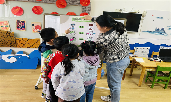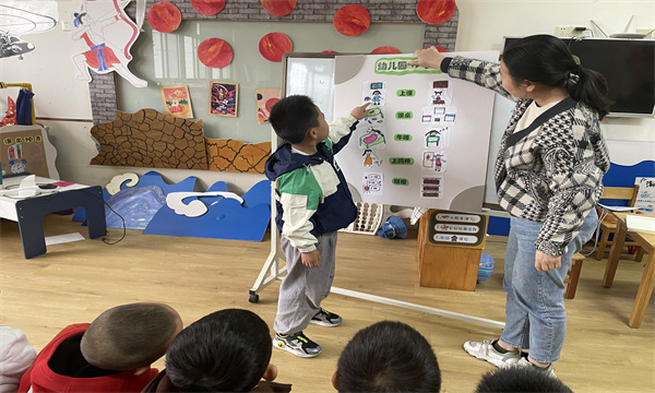 幼儿园一日生活活动不仅是幼儿一日活动正常开展的保证,更是幼儿健康成长的保证。2022年11月4日常州市广化幼儿园大三班的小朋友们和老师一起探讨设计自己的一日生活。课程前期,老师出示一幅幅图,让幼儿大胆的说一说,我们在幼儿园每天所做的事情。