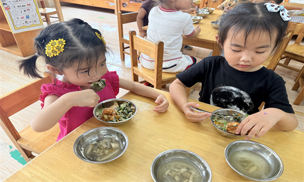在午餐和午睡时间,大部分孩子都能听从老师的引导,尝试自己吃饭、穿衣、整理床铺,自理能力得到了锻炼。尽管仍有个别孩子需要老师的帮助,但他们也在努力学习和适应。