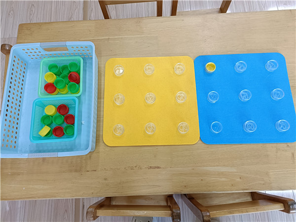 益智区摆放着水果影子配对卡片,孩子们通过观察水果的外形轮廓,将彩色水果图与对应的黑色影子进行匹配,在这个过程中,不仅能认识不同的水果,还能提升观察力与逻辑思维能力。还有形状、图案拼插类的材料,孩子们专注地拼接、组合,在操作中探索形状的奥秘,发展空间认知能力。
