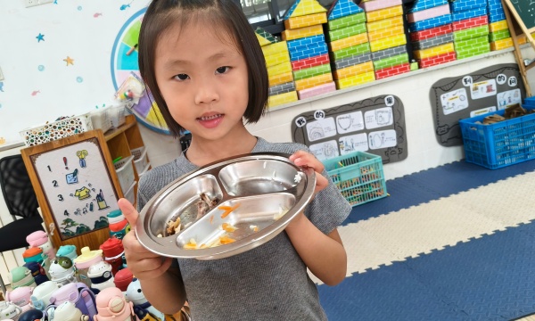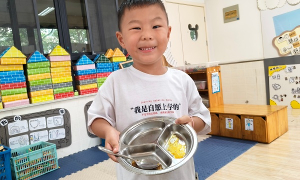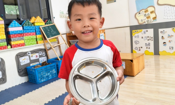 为引导幼儿树立节约粮食的意识,养成不挑食、不浪费的饮食习惯,中班年级组围绕“光盘行动”设计了一系列趣味化、沉浸式活动。餐前,教师们通过绘本故事《一粒米的旅行》,带孩子们了解稻谷从田间到餐桌的全过程,用生动的画面让“每粒粮食都来之不易”的道理扎根心底;食堂阿姨还化身“美食解说员”,通过照片展示当天食材的生长模样,激发孩子们对食物的兴趣。餐过程中,各班创新推出“光盘小勋章”激励机制。孩子们只要将餐盘里的饭菜全部吃完,就能获得一枚印有卡通图案的贴纸勋章,集齐5枚还能兑换一次“班级小厨师”体验机会——协助老师分发水果、摆放餐具。同时,教师们以“美食小评委”的身份,鼓励幼儿尝试不同种类的食物,对勇于挑战新口味并坚持光盘的孩子及时点赞,让“光盘”成为班级里的“新风尚”。如今,中班幼儿的午餐餐桌发生了明显变化:剩饭剩菜的餐盒少了,主动添饭的孩子多了;挑拣食物的现象少了,互相展示“空碗”的场景多了。不少家长反馈,孩子在家吃饭时也会主动说“要像在幼儿园一样光盘”,还会提醒家人珍惜粮食,节约习惯从校园延伸到了家庭。