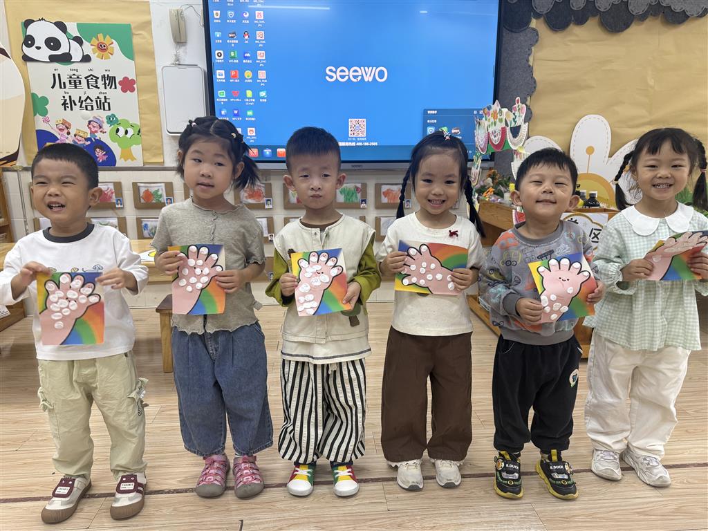 为了让幼儿更直观地巩固洗手卫生意识,老师还带领大家开展了手掌创意手工活动。孩子们发挥想象力,制作出以“洗手”为创意灵感的手掌作品,在动手操作中进一步强化了对卫生习惯的认知。