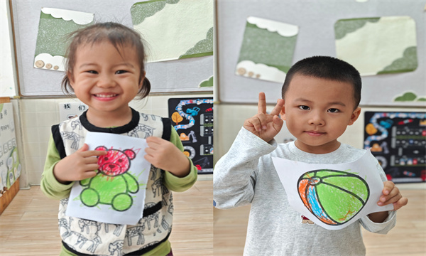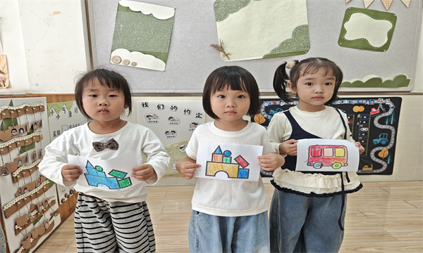 活动最后,孩子们纷纷展示自己的作品。有的孩子画出了像彩虹一样绚丽的城堡积木,有的孩子笔下的玩具汽车有着明亮的色彩和独特的图案。孩子们拿着自己的画作,脸上洋溢着自豪与喜悦的笑容,互相分享着创作的乐趣。