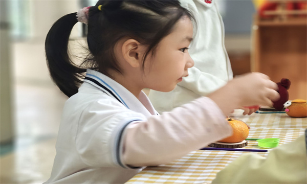 活动现场,橘子、南瓜、柚子等水果被孩子们精心挑选,毛球、彩泥、牙签、毛绒布等材料也成了 “变装神器”。只见孩子们化身 “小小设计师”:有的给橘子贴上彩泥做的眼睛、戴上布艺小帽,让橘子瞬间有了 “萌趣表情”;有的用彩色毛球装饰南瓜,再搭配扭扭棒做的 “小尾巴”,打造出活泼的 “南瓜精灵”;还有的借助柚子皮和瓜子,制作出浑身带 “刺” 的独特娃娃…… 专注的神情、灵巧的动作,让教室里充满了创意火花与欢声笑语。