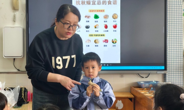 2025年10月27日上午,常州市广化幼儿园大一班进行了一场“捡秋”,自然探索活动,活动前,老师先带着孩子们认识“抗秋燥食谱”,从莲子、银耳等食材里读懂秋天的特质;随后,孩子们化身“自然收藏家”,蹲在草坪上轻拾飘落的桂花瓣、黄枫叶,掌心很快攒起一小捧“秋意”。有的孩子把桂花凑到鼻尖轻嗅,有的两两合作分拣叶片颜色,连小树枝、野果都成了他们眼里的“宝贝”。