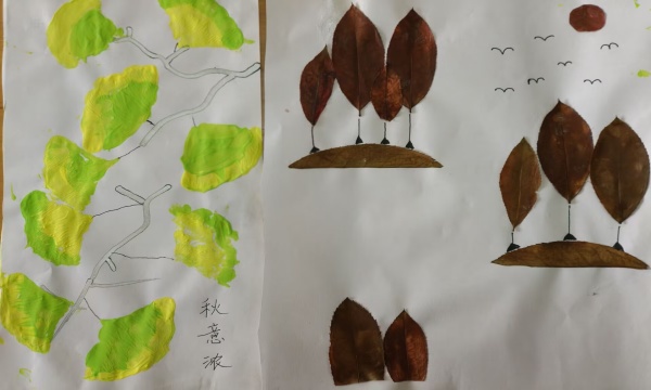 捡来的自然物,还成了创作素材:孩子们用枫叶拼贴成“秋日树林”,用桂花瓣点缀叶画,白纸瞬间晕染出“秋意浓”的诗意。“我要把这幅画带回家,让妈妈闻闻秋天的味道!”孩子举着作品笑眼弯弯。