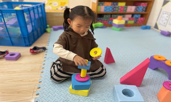活动伊始,孩子们便迫不及待地投身“建筑”工作。面对形状各异、色彩缤纷的泡沫积木,他们眼神里满是好奇与期待。有的孩子独自专注创作,小手灵活摆弄,将积木有序堆叠,认真搭建属于自己的“小城堡”。每一次小心放置,都是思维的一次跳跃,从构思造型到实际搭建,不断尝试调整,锻炼着空间感知与动手能力。