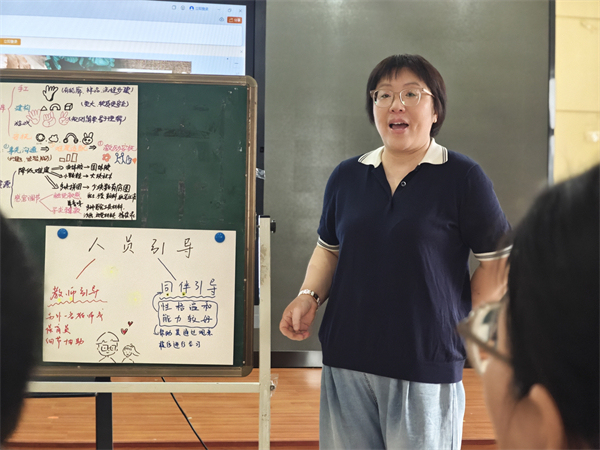 分组共创环节成为本次教研的核心亮点。全体教师按核心问题分为四组,聚焦 “环境优化、资源调配、人员引导、教学调整” 展开深度研讨。各组结合视频案例与教学经验,碰撞思维、凝聚智慧,提出了一系列具体可操作的支持策略:打造 “分层环境” 与可视化提示系统优化融合空间,建立标注 “适配能力等级” 的资源储备库满足差异化需求,组建 “1+1+N” 支持小组强化人员协同,通过分层目标、多感官教学与弹性环节实现教学适配。经过各组代表分享与集体补充完善,最终凝练形成了覆盖四维度的 “孤独症儿童班级融合支持策略框架”,为教师提供了清晰的操作指引。