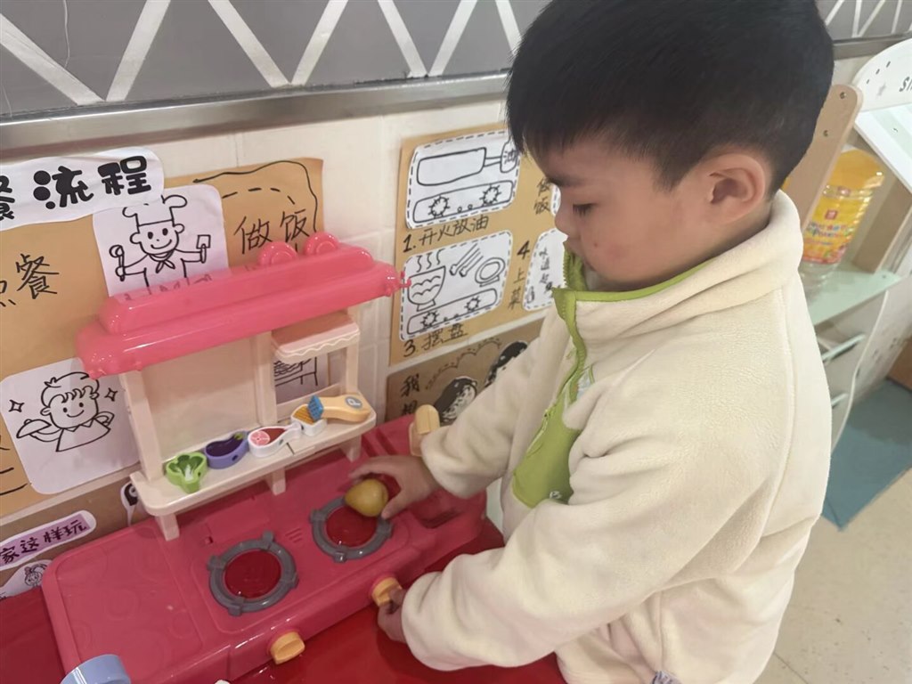 这场“厨房戏剧”不只是“过家家”:拿取厨具时的手部动作,锻炼了精细动作;和同伴商量“做什么菜”,是语言表达的练习;跟着流程卡做事,也悄悄培养了秩序感。把戏剧游戏和区域结合,让孩子们在“假装扮演”里,自然地学会合作、观察与表达。