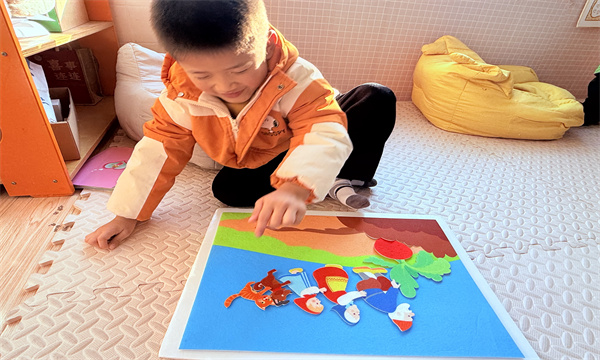 小班幼儿正处于语言表达和逻辑思维发展的关键期,《拔萝卜》故事情节简单、重复性强、语言生动,恰好契合了孩子们的认知特点,一经引入便深受喜爱。为了让孩子们更深入地理解故事,教师精心设计了系列趣味活动。在 “图片排序小能手” 环节,孩子们围坐在一起,认真观察印有老爷爷、老奶奶、小姑娘、小狗、小猫、小老鼠和大萝卜的图片,凭借对故事的记忆,互相讨论、协作,将打乱的图片按情节发展顺序排列整齐。过程中,孩子们不仅巩固了故事脉络,还锻炼了观察能力和逻辑思维,每当成功完成排序,大家都会兴奋地拍手欢呼。
