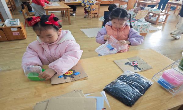 最受欢迎的当属泥泥狗制作区。老师们提前准备好细腻的陶泥,讲解揉、搓、捏、压的塑形方法。孩子们尽情发挥想象,将陶泥揉成圆球、搓成长条,再精心雕琢五官和花纹。憨态可掬的小猪、奔腾的骏马、机灵的小猴…… 一块块普通的陶泥在孩子们手中变成了形态各异的生肖泥泥狗,大家互相展示作品,脸上洋溢着自豪的笑容。