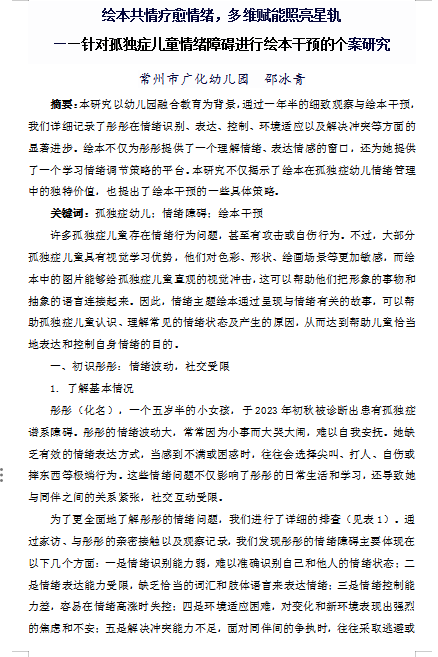 邵冰青:常州市“孤独症全程支持服务”主题征文评选二等奖
