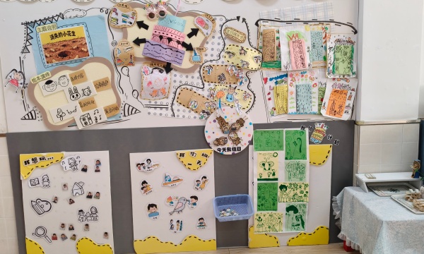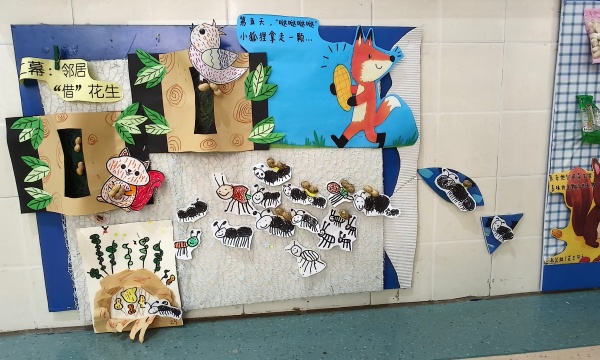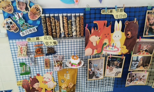 活动前期,老师们带领孩子们共读花生主题绘本,从《花生的旅行》到《消失的小花生》,孩子们在趣味故事里认识花生的生长过程,感受小花生的勇敢与智慧。随后,师生共同化身“环境设计师”,开启主题墙创作之旅。孩子们用稚嫩的小手,将彩纸剪成圆润的花生形状,画上笑脸与梦想;用黏土捏出花生宝宝、花生房子;还把自己创编的花生小故事,用图画和简单符号记录下来,粘贴在主题墙的“故事角”。老师们则巧妙布局,将主题墙划分为“花生成长记”“小动物借花生”“惊喜生日宴”三个板块,让每一块墙面都承载着孩子们的奇思妙想。如今,走进常州市广化幼儿园中班各班,一面面“会说话”的主题墙格外引人注目。孩子们路过时,总会停下脚步,指着墙上的作品,向同伴讲述自己画里的花生故事,分享创作时的快乐。这面主题墙,不仅是绘本故事的延伸,更是孩子们表达自我、互动交流的小天地。此次花生绘本故事主题环境创设,打破了传统墙面装饰的模式,让环境真正成为幼儿学习与发展的“第三位老师”。未来,常州市广化幼儿园将继续以幼儿为本,创设更多富有童趣、充满教育意义的环境,让孩子们在看得见、摸得着、玩得到的氛围里,快乐成长。(撰写:周美玲/审核:虞静)