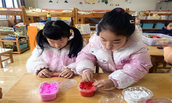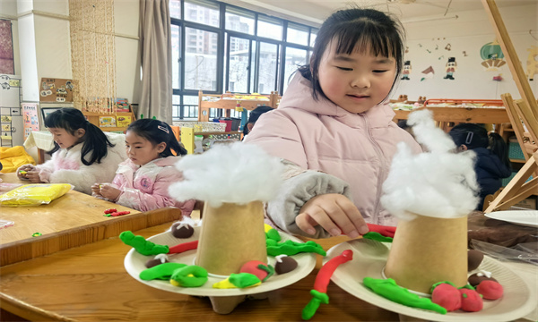 创作中,老师以提问方式耐心引导,孩子们主动交流技巧、分享想法。6岁的小帅打造了“全食材火锅”,囊括藕片、腊肉等12种“食材”;宁宁则制作了装满萝卜、青菜的“蔬菜篮”,直言冬天多吃蔬菜更健康。大二班的老师表示,晨间自主游戏是幼儿园一日活动的重要部分,此次粘土创作活动契合季节特点,既锻炼了孩子们的动手能力与观察力,又让大家在合作分享中感受创作快乐。