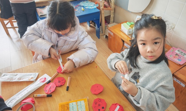 活动开始,老师通过生动的图片和趣味讲解,向孩子们介绍了糖葫芦的外形特点和酸甜口感,激发了孩子们的创作兴趣。随后,老师分步示范折纸技巧:先将红色彩纸裁成大小均匀的长方形,教孩子们通过对角折,翻折等手法制作出圆润的"山楂果";再引导大家用黑笔在山楂果上添上各种各样的表情;最后,让孩子们将折好的"山楂果"一个个串在提前准备的筷子上,一串串形态逼真的折纸糖葫芦便"新鲜出炉"了。