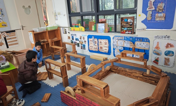 建构区里,孩子们化身“小小建筑师”,分组协作、各司其职,开启了盖房子的奇妙旅程。有的小组选择轻盈的稻草、积木,小心翼翼地搭建着“草房子”,认真模仿童话中小猪搭建的模样,力求稳固又贴合原型;有的小组选用木质积木,层层叠加、相互拼接,专注地搭建出结实的“木头房子”,不时讨论着“怎样搭才能不倒塌”;还有的小组则选用仿真砖块积木,一块一块有序堆砌,耐心搭建着最坚固的“砖房子”,过程中遇到积木倒塌的问题,孩子们不气馁、不放弃,相互帮忙、反复尝试,在实践中摸索搭建技巧,在合作中收获成长快乐。教师全程巡回指导,适时给予启发与帮助,尊重幼儿的创意表达,鼓励孩子们大胆尝试不同的搭建方法,让每个孩子都能在建构过程中体验成功的喜悦。