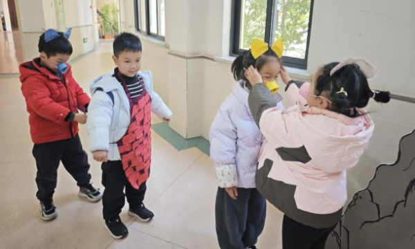 为激发幼儿的想象力、创造力和动手能力,培养幼儿的规则意识与合作精神,近日,常州市广化幼儿园大四班扮演区开展了《三只小猪盖房子》主题角色扮演活动。活动全程以幼儿为主体,从自制头饰服饰、排队检票入场到自主布置观众席场地,每一个环节都由孩子们亲自参与完成,大家在沉浸式体验中释放天性,收获了满满的快乐与成长。