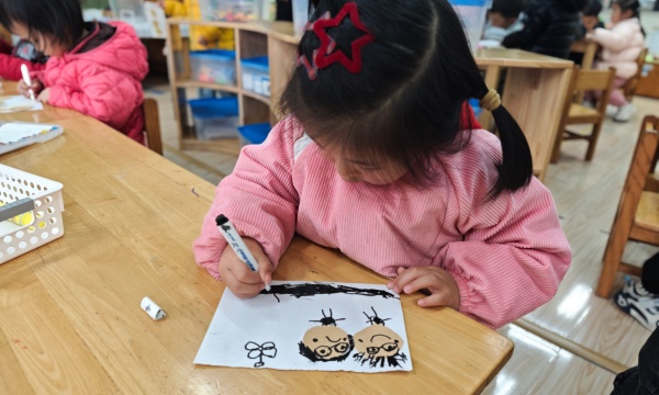 随后,孩子们拿起画笔和彩纸,用圆形纸片当作家人的脸庞,用线条勾勒出五官、发型和服饰。有的孩子给爸爸画上了眼镜,有的给妈妈添上了长长的麻花辫,还有的用鲜艳的色彩画出了和家人一起玩耍的场景。每一笔都充满童真,每一幅画都独一无二,生动展现了孩子们眼中幸福的家庭模样。
