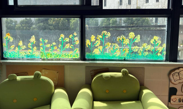 当孩子们的作品被精心布置在教室玻璃窗上时,惊喜悄然发生:阳光透过玻璃洒在画作上,与窗外的春日景致交相辉映,整个教室仿佛变成了一片金灿灿的油菜花田。孩子们围在窗边,兴奋地指着自己的作品分享,眼里闪烁着自豪与喜悦的光芒,欢声笑语在教室里回荡。