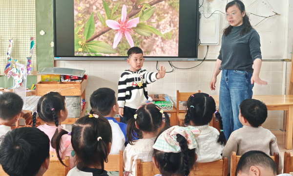 活动室内,教师通过多媒体展示桃花实景,细致引导孩子们观察花瓣形态、花蕊结构,孩子们纷纷举手分享自己的发现,课堂满是童真与热烈。走出教室,师生一同走进园区绿植区,老师耐心讲解植物特征,带领孩子们近距离触摸嫩绿枝叶、辨认植株形态。孩子们仰着小脸,指尖指向枝头嫩芽与繁花,眼神里满是对自然的好奇与惊叹,探索自然的美好种子在心底悄然生长。