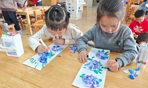 为丰富幼儿的艺术体验,锻炼动手操作能力,感受传统印染工艺的魅力,广化幼儿园大四班在美工区增添了“洗脸巾印染制作绣球花”手工活动,让孩子们在色彩与创意的碰撞中,邂逅一场浪漫的艺术之旅,感受春日繁花的美好。