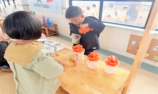 小班老师们始终以观察者、引导者的身份陪伴在孩子们身边,尊重幼儿的自主选择,鼓励孩子们大胆尝试、大胆表达。针对孩子们在游戏中出现的问题,老师适时给予引导,帮助孩子们梳理思路,让游戏更具趣味性和教育性。老师们表示,“小厨房”与“甜品站”的游戏贴近幼儿的生活经验,既能满足孩子们模仿成人生活的愿望,又能让孩子们在动手操作中感知生活细节,培养良好的生活习惯和社交能力。
