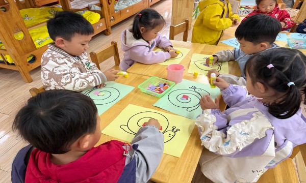 孩子们专注地挑选贴纸、小心翼翼地粘贴,发挥想象搭配色彩。有的给蜗牛贴上彩虹色花纹,有的用清新浅色调打造春日感。简单的贴纸在孩子们手中,让一只只蜗牛变得鲜活灵动,满是春日童趣。